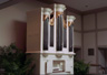 In 1893, Christ Lutheran Church purchased a new organ and the Tannenberg went unused until it was dismantled and completely rebuilt in 1905 by Reubin Midmer & Son. His alterations were extensive: an internal framework was constructed to support the chest instead of by the case itself and the bottom side panels were swung out to the front to support new zinc front pipes (see photo below). The entire winding system was discarded and a new single-rise reservoir was placed within the case. In addition, Tannenberg's pedal chest and pedal action were discarded in favor of a tubular-pneumatic chest. The keyboard and pedalboard were replaced as well. Finally, Tannenberg's Trumpete 8' was discarded and a tenor c Oboe 8'. Midmer also raised the wind pressure (necessary for the tubular-pneumatic action to work properly) and raised the cut-ups on many of the pipes. The rebuilt organ was installed in the Beehive Chapel which was used by the Sunday School of Christ Church.