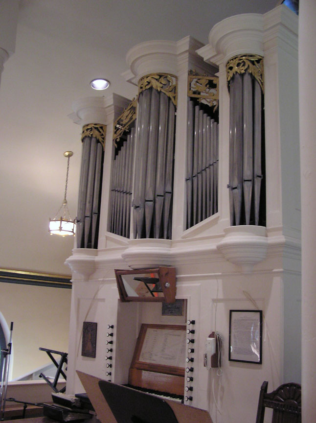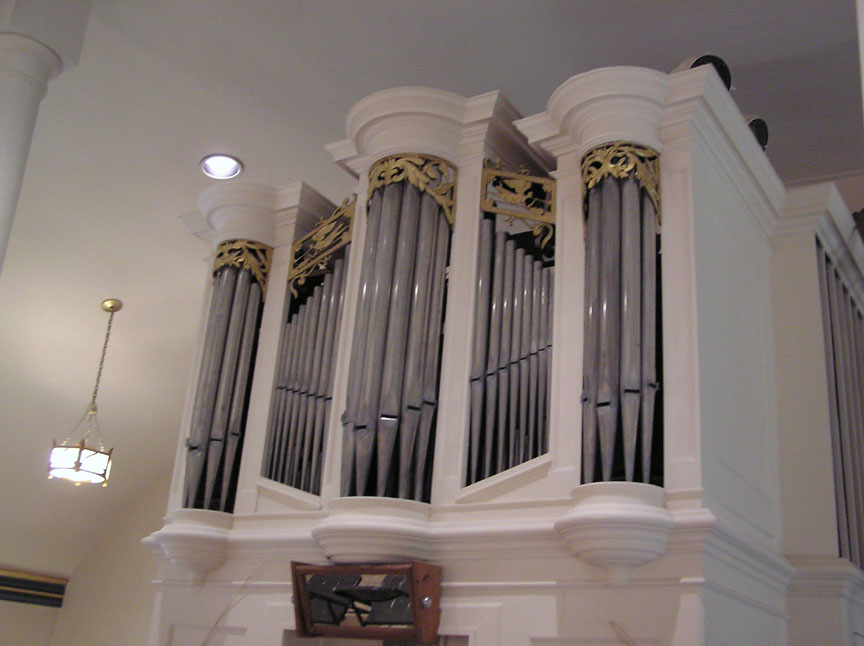 The organ was once again rebuilt, this time in 1905 by Barrington & Oakey. It is not certain exactly what work they did, but there are pipes in the organ today that are old but not of a Pennsylvania-German origin. By the time the organ was rebuilt a fourth time - in 1862 by Hartman-Beaty Organ Co. - many of the 1799 pipes had already been removed. The stoplist immediately before the 1962 rebuild was: