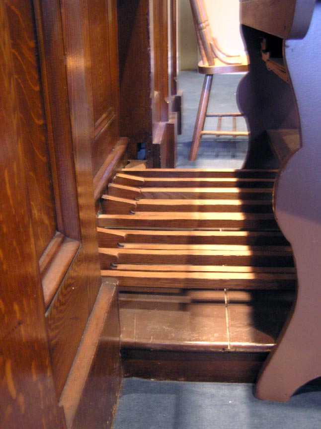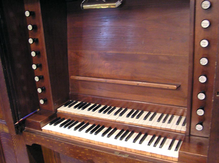 The Floet 8' is open wood. The Night Horn is an identical rank. The Dulcet 2' is a smaller-scaled principal rank. The 16' Subbass and Violon are actually the same open wood rank; the Violon is on lower pressure.