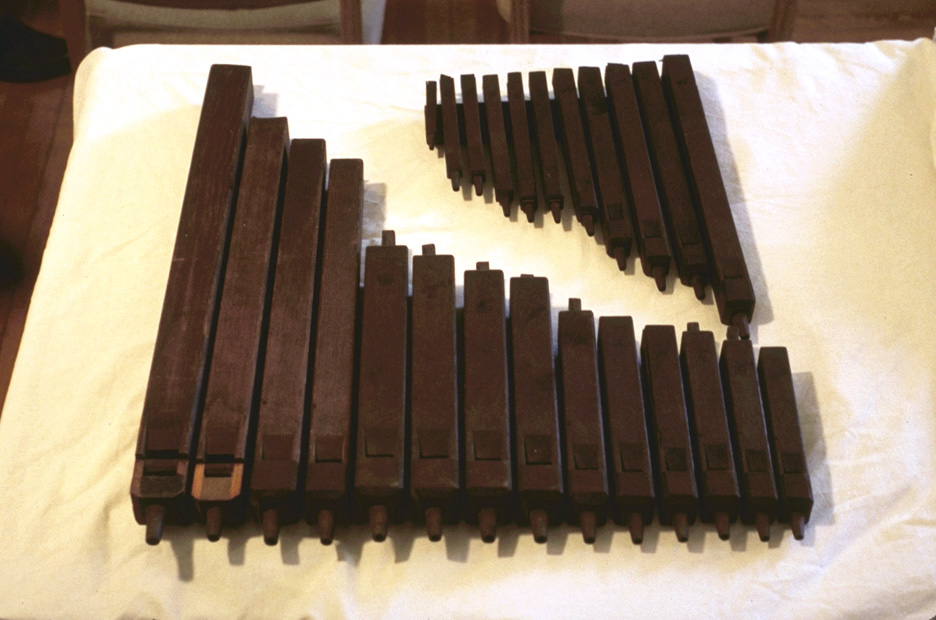 The organ was used until 1832 when it was sold to the Lutheran Church in Plainfield in Northampton County. In 1852 it was repaired (or perhaps rebuilt) by Charles Heintzelman who apparently added a detached and reversed console. Early in the 20th Century, the organ was dismantled and stored in a shed and eventually given to the Historical Society of Northampton County in 1920. Unfortunately, the organ has since disappeared except for 43 wood pipes stored at the museum. An examination of these pipes shows them to be from the Gedackt 8' and Flute 4' ranks.